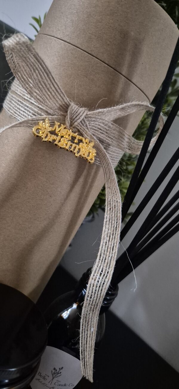 - Kraft Tube Packaging, Hessian Bow, Gold Merry Christmas Charm & Gift Tags